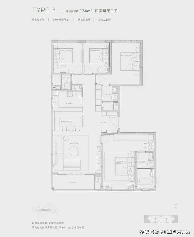 约37万㎡全龄社区,产品涵盖145-320㎡三至五房,私家电梯厅,专梯专户。