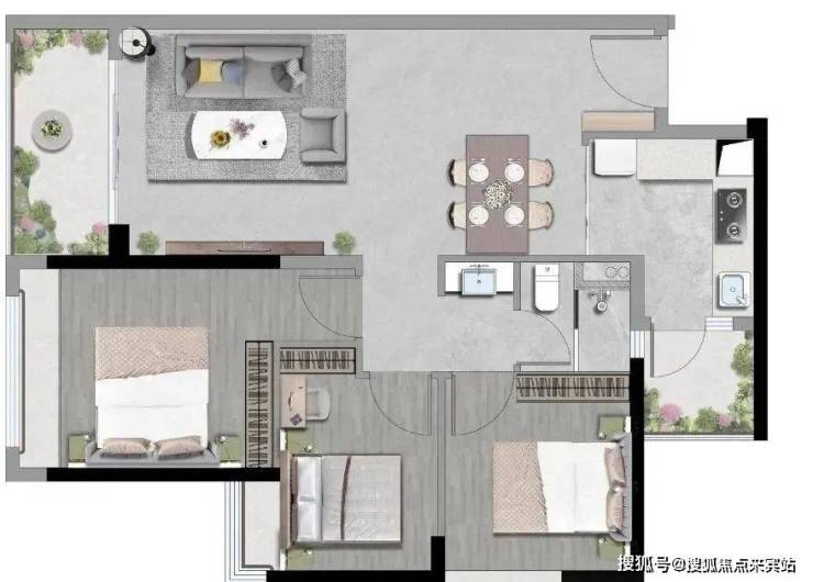 【88㎡3房2厅1卫】高实用空间:动静分明 生活井然有序L型厨房:动线流畅 让烹饪更自在客餐厨直连:通透无界 全家欢愉的生活场双阳台设计:辽阔视野纳藏无限风光。