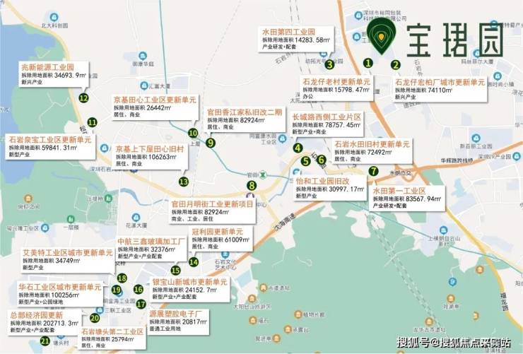 【城市更新·装下增长】品牌开发商抢滩入驻,超200万旧改规划落地,纵享城市发展红利以科创城为依托,区域目前已吸引X润、保X、X基、宏X、启X等知名开发商抢滩入驻,26个“十三五”城市更新规划项目陆续启动。更新项目涵盖约40万方X基综合体、X润罗租综合体、约44万方总部经济园区等项目,未来将新增超约200万方新兴产业综合体。明星产业集群与高科技人才的涌入将加速焕新城市活力、推动居住用地价值崛起,石岩经济圈的璀璨光华尽在眼前