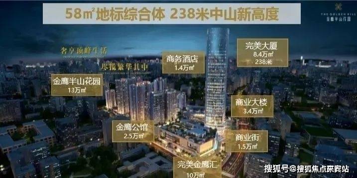 【项目价值】开发商品牌:金鹰广场是由具有国际资本实力的中山市金鹰房地产开发有限公司建设,斥资40亿重金打造,集甲级写字楼、购物中心、酒店、公寓、高档住宅为一体的都会综合体,可媲美世界级的豪布斯卡。老板为古润金,实力雄厚曾经参与开发过众多的知名项目(马来西亚双子塔、金沙酒店),开发商统一负责项目的招商,保证项目内始终如一的高档生活体验。
