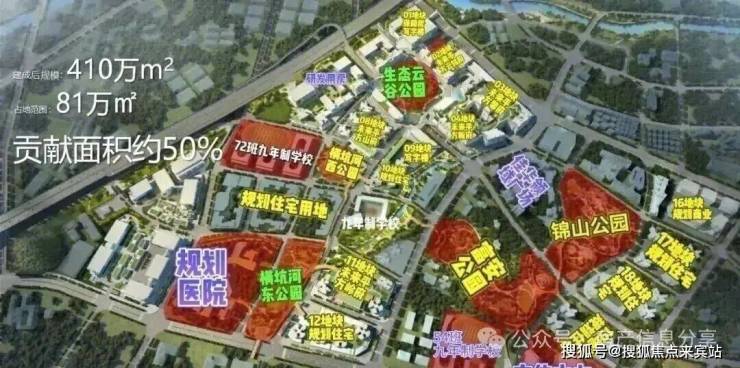 鸿荣源观城 总占地面积约68万㎡,其中有40万㎡属于鸿荣源,包含住宅、商业、产业,还有约28万㎡由鸿荣源代建移交政府的公共配套,包含绿化、水系、公园、学校、医院、养老院、文体设施等。