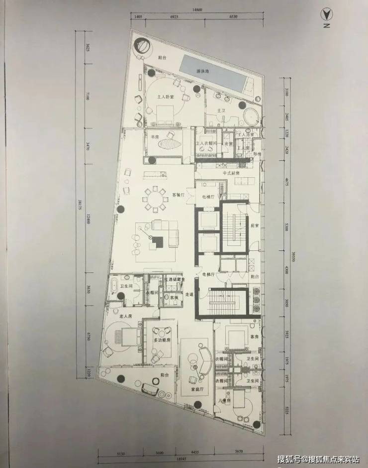 高区偶数层,A户型介绍及户型图(21-49层)约520平