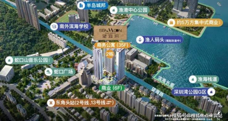 招商望海玥位于深圳市南山区蛇口新街与渔村路交汇处、距离地铁2/8号线东角头站267米;预计即将推出的是389套公寓产品、36--60平一至二房;预计住宅67--95--106--112--125平二至四房暂时不推出.