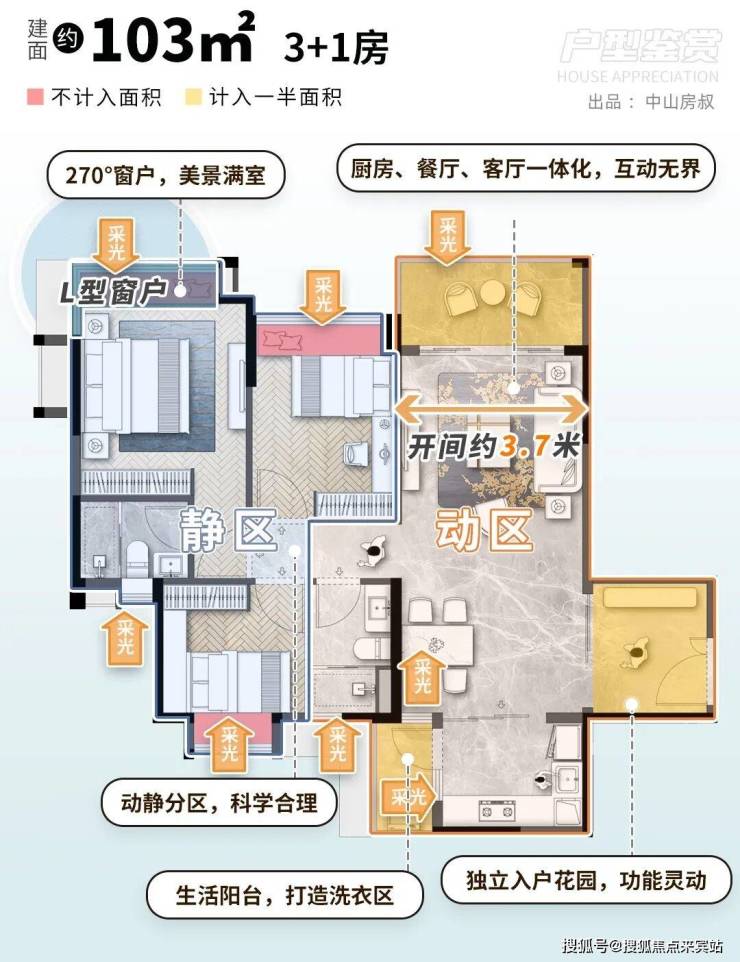 先来看建面约103㎡3+1房。