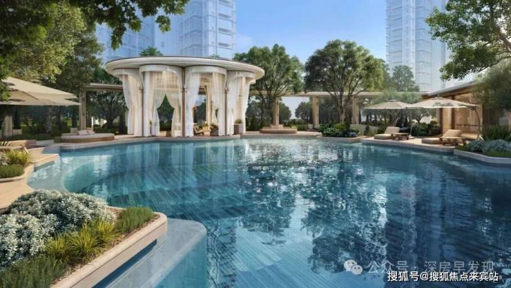 光明罕见3.1低密围合浮岛布局,以南法五园、浮岛泳池,臻选多种奢石名木,打造深圳首座低密南法艺术花园。并以约10M凯旋之门、9.4M穹顶光厅等配置,铺陈片区唯一千万级七重归家礼序。