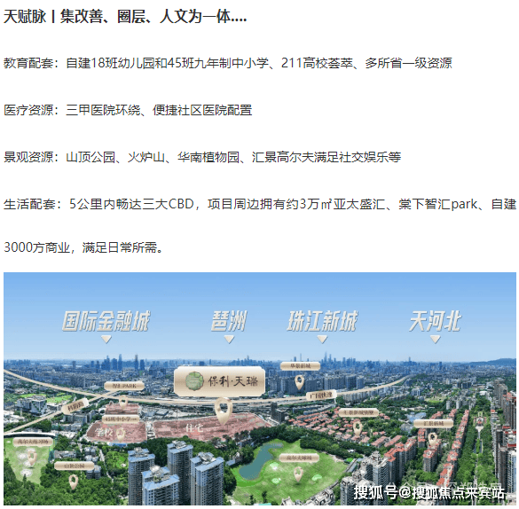 保利天瑞位于天河五山汇景新城板块内,珠江新城和琶洲金融城两中轴间的核心位置,楼盘身后就是汇景20年醇熟的圈层配套