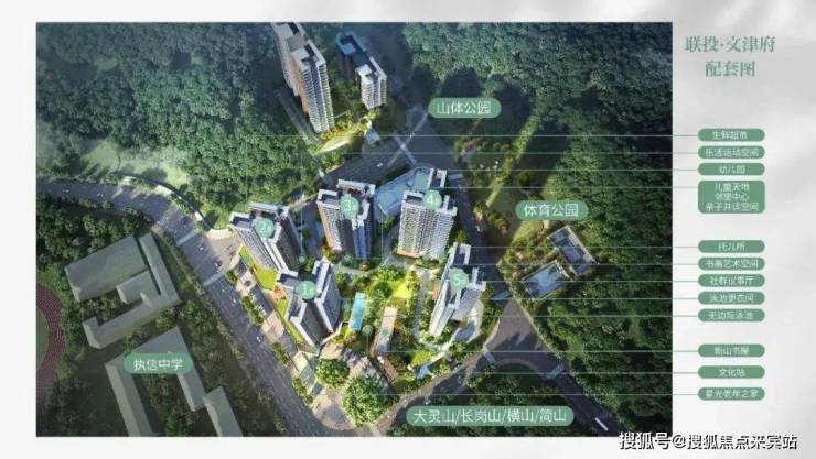 在居住环境方面,联投文津府致力于打造低密住区,实现人、土地、建筑和自然的和谐共生。项目周边被大灵山、长岗山、横山、简山三面环绕,拥有得天独厚的自然环境。项目还保留了原生地脉上的6棵古榕,为社区增添了浓厚的人文底蕴。