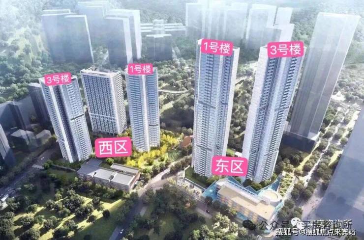 西区有两栋住宅楼、一栋回迁房和一所18个班的幼儿园。可售住宅(1栋+3栋)共计330套住宅,3月份开盘,目前所剩房源不多,交房时间为2026年6月。