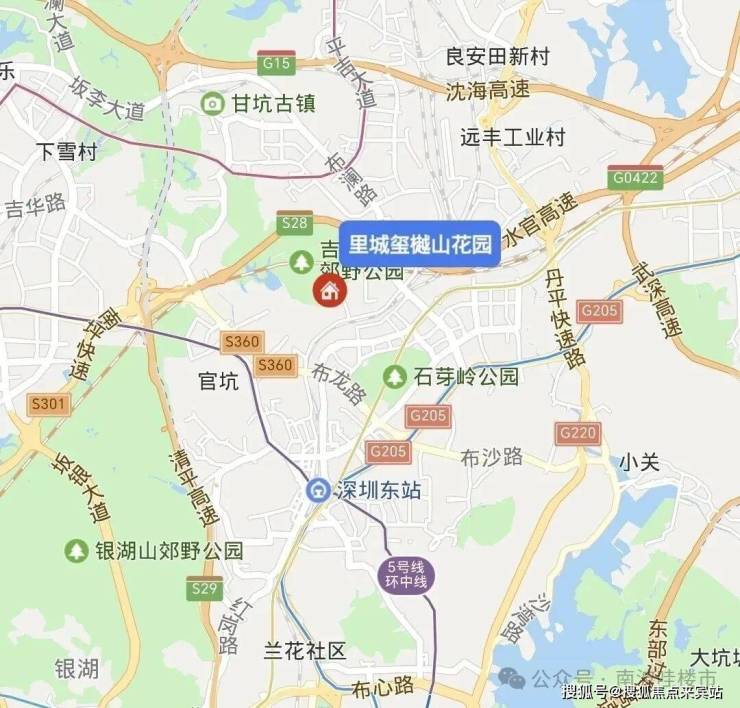 里城玺樾山,位于龙岗区吉华街道三联社区,项目背靠三联郊野公园,从大区位来看,北邻平湖,西邻坂田,南邻布吉中心区,东邻横岗片区。