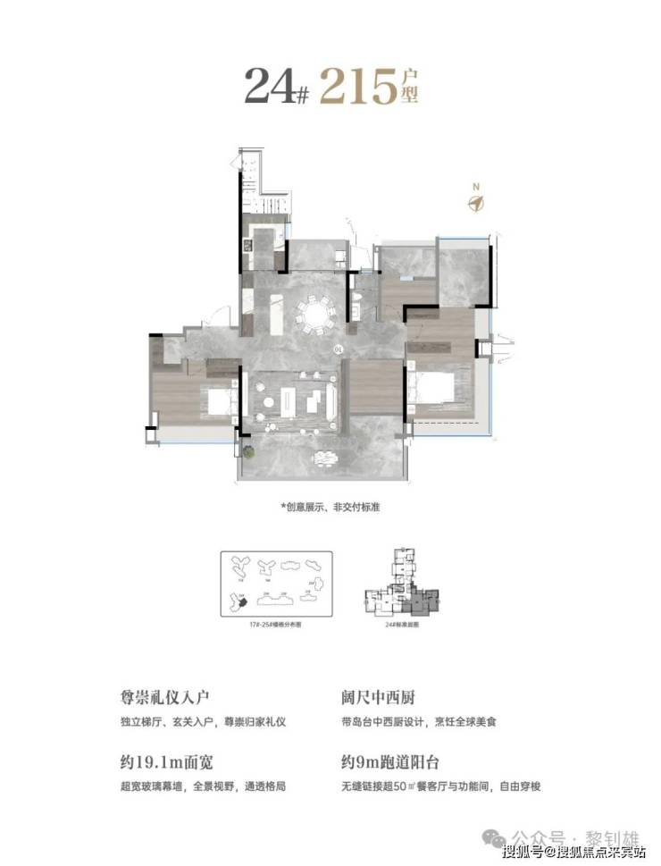 项目主推140-325㎡南向板楼,两梯一户设计,实用率达100%-110%,核心户型亮点包括: