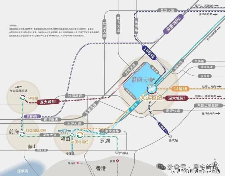 直连大运枢纽,东部唯一集城际、快线、普线于一体的交通枢纽,四轨交汇,3/14/16号线(已开通)和深大城际(建设中),约28分钟福田岗厦北,半小时宝安机场南山前海。