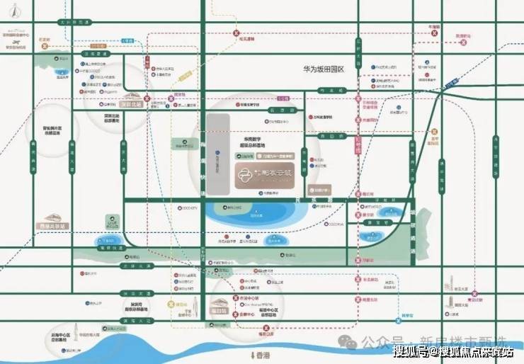④深圳发展中轴,华南数字超级总部基地、星河world总部基地、坂雪岗科技城、北站产融结合示范区、梅彩新一代信息科技,连成深圳中轴含金量置顶的价值金线。