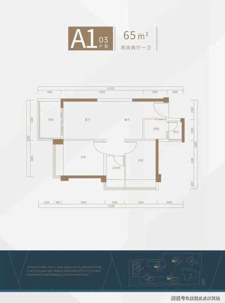 65㎡的2房1卫,其中A1-02、03户型互镜像