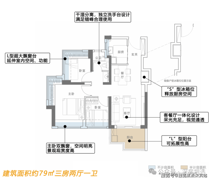 片区王牌户型-约79-89㎡全朝阳三房王牌住宅 使用率高达93%
