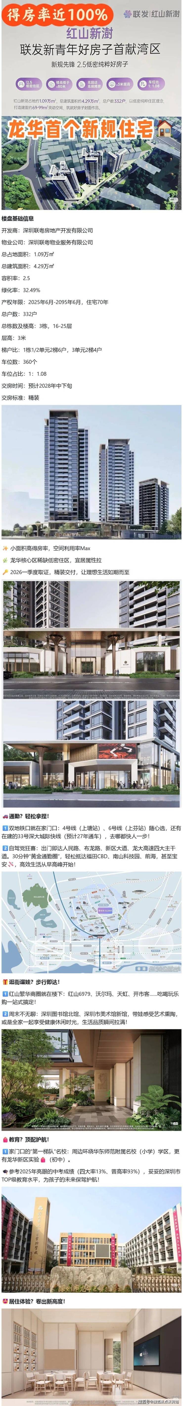 国企联发匠心打造,联发新澍雅居落位龙华红山-上塘核心居住区,以2.5的低容积率打造纯商品房低密社区,聚焦刚需与刚改家庭需求,极致户型、全维配套与精工品质兼具,如需了解项目详情,可拨打售楼处咨询电话400-9098-698,解锁专属置业体验。