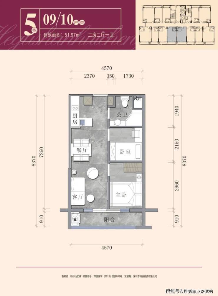第一栋:5梯6户,总层高22层,整层面积1380.26平,132户