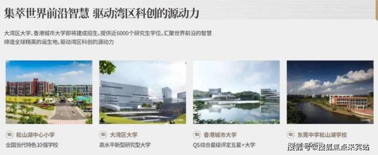 大学:松湖瑞府虹吸松湖优质教育圈,片区设有东莞理工学院、大湾区大学(在建)、香港城市大学(在建)等;