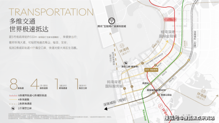 湾啟紫荆府距离5号地铁线“妈湾站”约550米,步行5分钟即可到达,1站到铁路公园站可换乘15号地铁线,深惠城际“前保站”距离约1公里,便捷通行,毗邻听海大道,快速通达南山,福田,宝安。