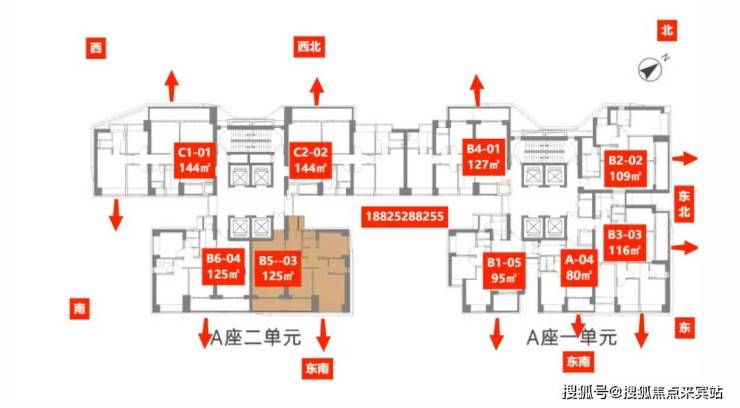 住宅梯户比:一单元四梯五户、二单元四梯四户