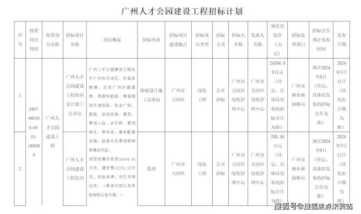 最近,广州人才公园建设招标计划公布,包括建设工程勘察设计施工总承包和建设工程监理,预计总投资2.45亿。
