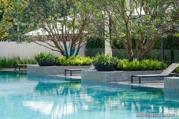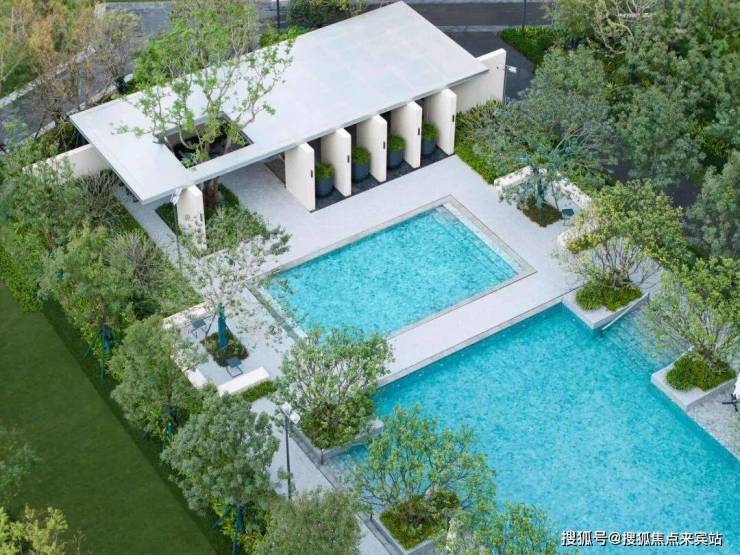 轻氧泳池与常绿阔叶乔木对望,潜入水中犹如融入于森林,与自然共鸣共生。