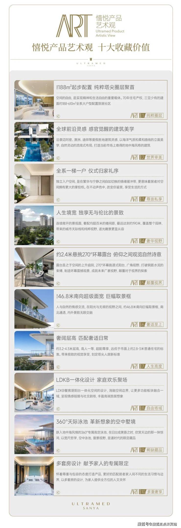 它的产品力堪称 “十项全能”。约 3.5m 的层高,赋予空间开阔感;全系一梯一户设计,保证了尊崇私享;超 100m 的楼间距,带来奢华视野;还有多套房设计、LDKB 一体化的自由场域、最大约 46.8m 的巨幅取景框、约 2.4m 悬挑 270° 环幕露台以及 360° 天际泳池等,每一项单拿出来,都能吊打市面上大多数豪宅产品,完全具备 “传世豪宅” 的素养。
