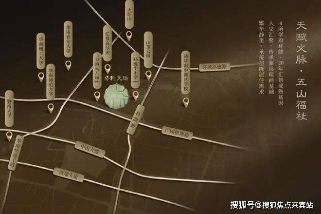 项目位于天河五山汇景新城板块内,珠江新城和琶洲金融城两中轴间的核心位置,楼盘身后就是汇景20年醇熟的圈层配套