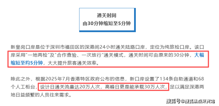与此同时,深港互联再提速。新皇岗口岸联检大楼主体结构已基本完成,未来福田往来香港预计通关时间将从30分钟大幅缩短至约5分钟,日通关流量预计可达20万人次。这一“超级口岸”的落成,将使福田成为深港双城融合的最前沿。