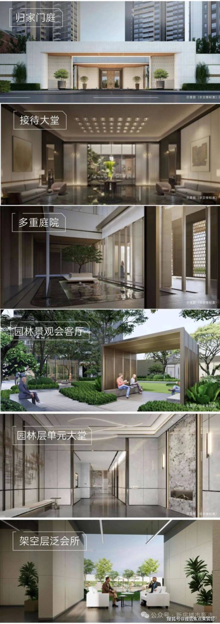 仪式门廊→接待大堂→下沉庭院/会所 →园林景观会客厅→架空层泛会所→ 园林层单元大堂