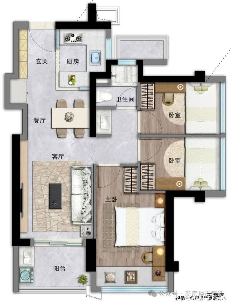 户型:建面约63㎡两房一卫/约76㎡三房一卫/约86㎡三房两卫/约112㎡四房两卫