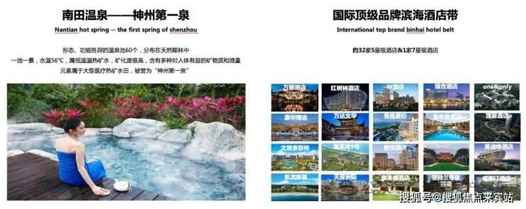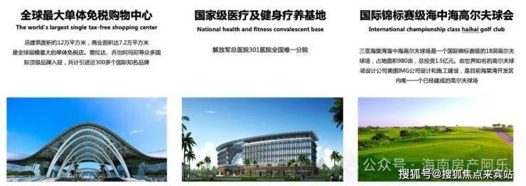 中国人民解放军总医院(301医院)、中国人民大学附属中学(人大附中)、海南国际免税城、 HELLO KITTY 主题乐园、海昌梦幻不夜城、乐高主题公园、亚特兰蒂斯水世界、海棠68(Arena)商业街、水稻国家公园、海中海高尔夫、36洞神泉国际高尔夫、IMAX影城、银行、超市、生活商圈配套。