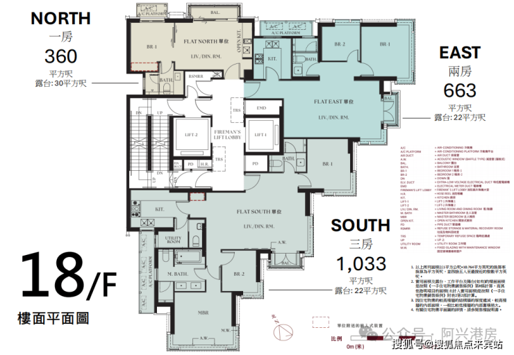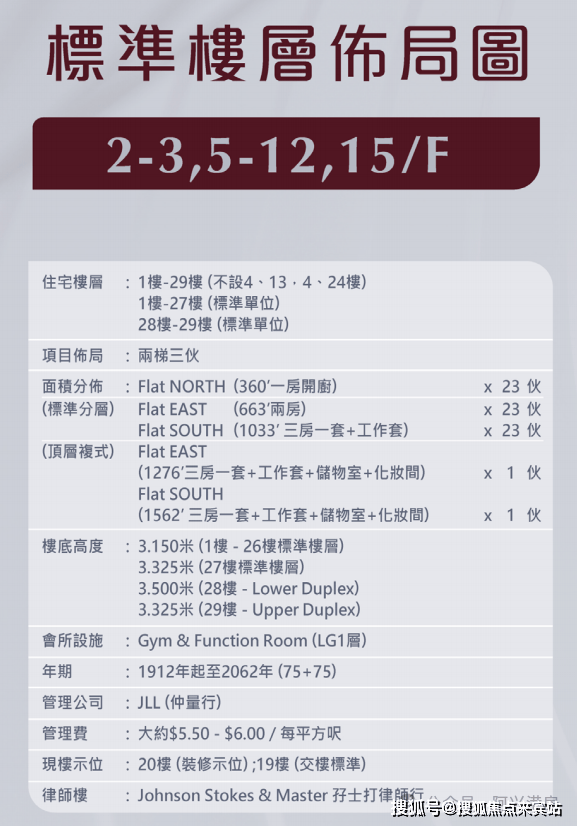 🔸面积最大则为顶层复式SOUTH,实用面积1562平方呎,3房1套户型,备有218平方呎平台。
