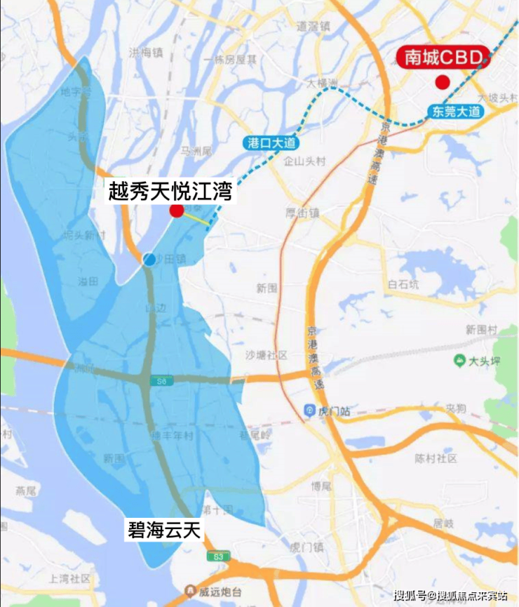一城轨:距离穗莞深城际(东莞港站)3KM,10分钟可达,8站达广州东,8站到前海;