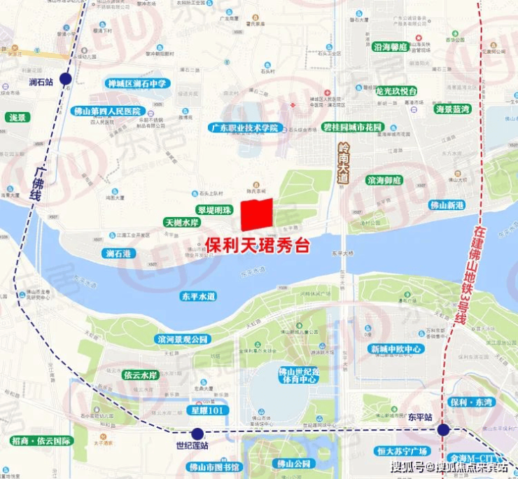 保利秀台天珺位于佛山市禅城区澜石板块,与佛山新城仅一河之隔,东平河畔的优越地理位置使其拥有得天独厚的自然景观资源。项目背靠岭南精神文化腹地,面朝新城千亿经济引擎,位于佛山城市中轴正脉,东平河三江交汇之处。这一独特的地理位置不仅见证了佛山乘三龙湾发展之势,更使其成为佛山走向世界的重要窗口。