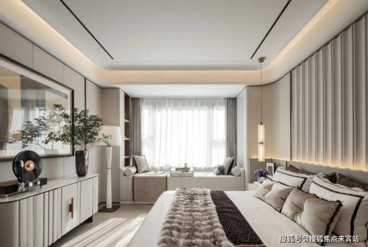 再比如烟台万科天琴湾建面约270㎡户型,而套房主卧,便是一处预留众多生活场景的“微型世界”,以高端度假酒店模式打造的主卧套房,同样拥有270°观景视野,独立衣帽间+独立四分离式五件套主卫组成,便是献予时尚者的挚礼。