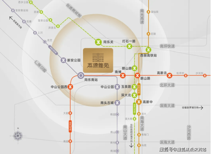 从大区位来看,荔源雅苑位居宝安区跟南山区交界处,西侧是宝安中心区,北侧是南山TCL科学园国际E城,东侧是西丽交通枢纽,深圳超级总部基地,南侧是南山中心区。