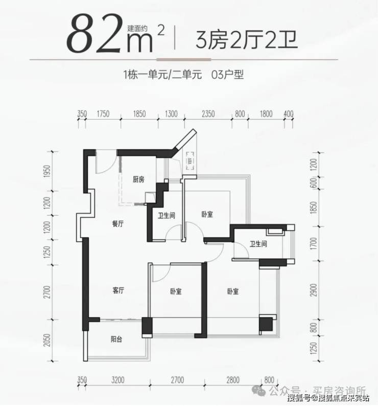 82㎡的3房2厅2卫,03户型,设计的是竖厅格局,进门独立玄关,LDKB一体化,S墙设计预留冰箱卡槽位,主卧双飘窗设计,L型厨房,卫生间干湿分离,得房率约100%(包含赠送),西南朝向。