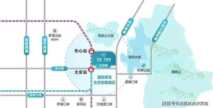 项目距离地铁5号线布心站约250m、距离地铁5、7号线太安站约500米。周边近享2高铁、3口岸、4快速,通达全城,三大口岸年通关量5876万人次,地铁旁物业坐享深港两地海量商机人流。