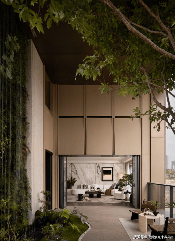 该产品特点是“每一院皆与客厅、公园景观直接联动”,赋予居者完整、私密的院落体验。两层挑高露台无上层视线侵扰,真正实现“抬头即天,俯首即院”。