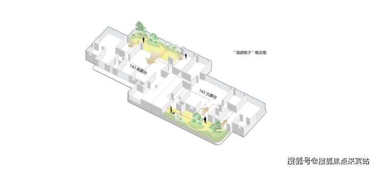 约3800平米的实景示范区,第二进的琉璃光瀑(奢石与树阵形成的限定之美)。