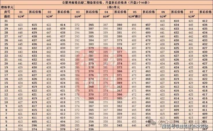 会展湾雍境名邸二期备案价格、冻资折后价格表