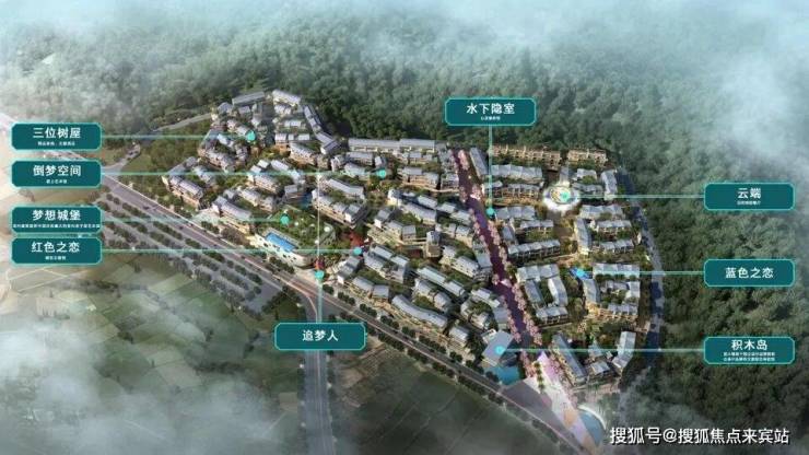 小镇通过积木岛、梦想城堡、云端、红色之恋、蓝色之恋、三位树屋、水下隐室、倒梦空间八大奇异建筑,汇聚顶尖品牌,打造科技馆、儿童乐园、婚恋主题馆、心灵修养馆等多元业态于一体的商业美学空间,是集网红打卡与商业场景并存的心地标。