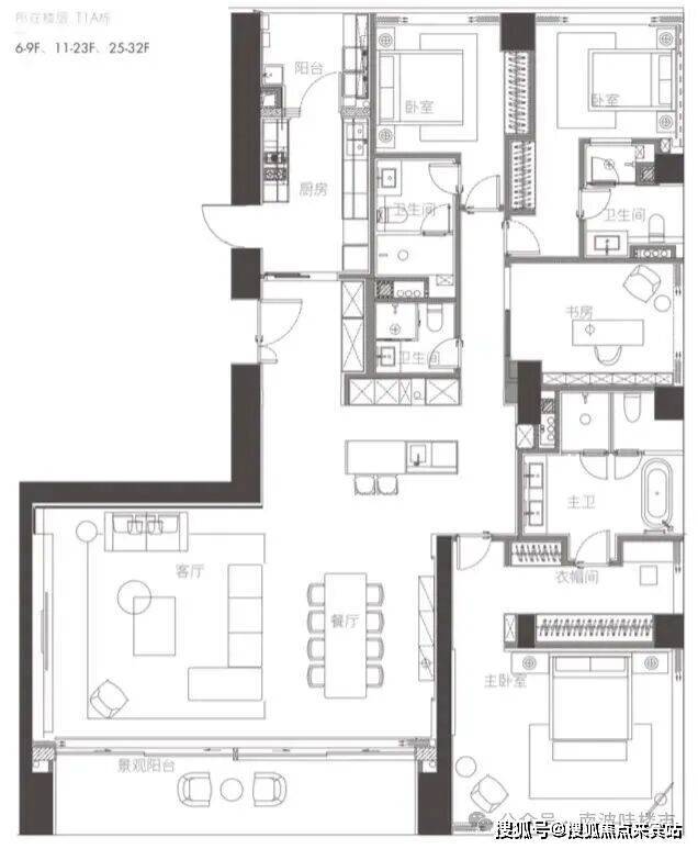 04户型 东端户 约350㎡ 四房两厅四卫(01、04镜像对称)