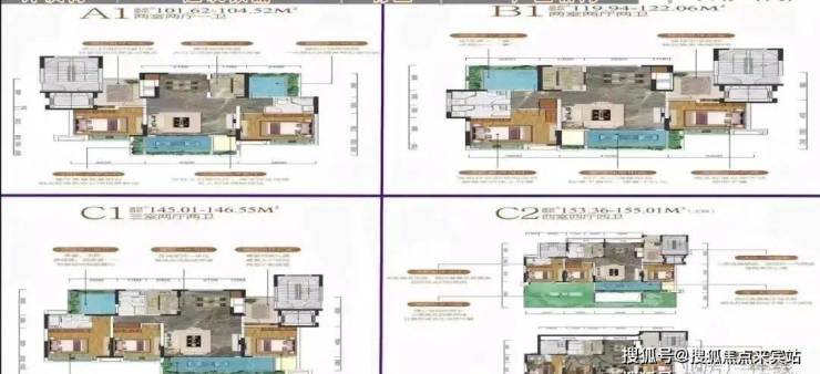 【主力户型】建面约101㎡两房两厅一卫,119㎡两房两厅两卫,145㎡三房两厅两卫