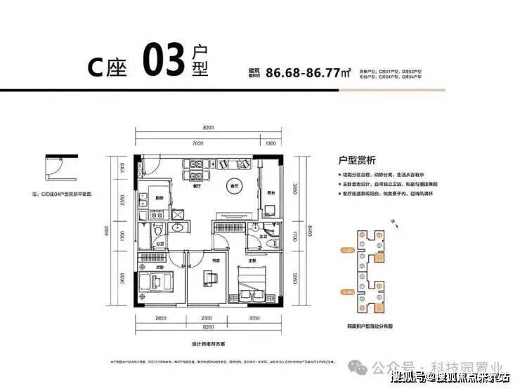 C03户型--约86㎡全能大三房 南北通透 全明格局