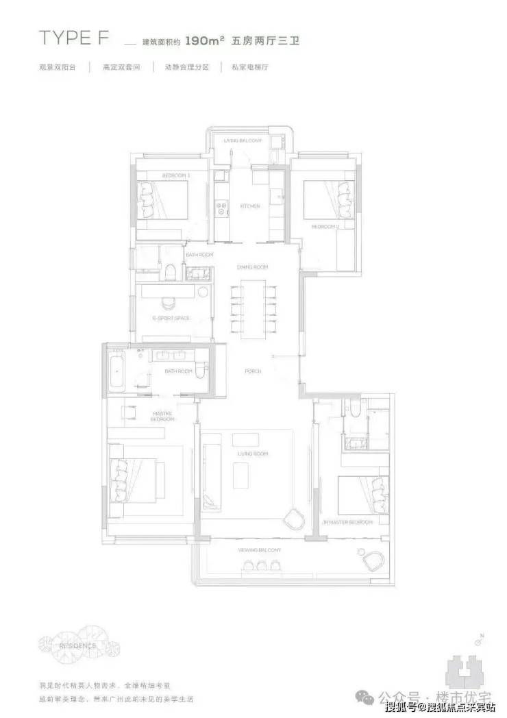 190㎡产品为五房两厅三卫产品,充满了对云端人群生活的独特见解,南向双主卧,中西厨布局,打造纵向超长LDK一体化空间,产品所体现的不只是居住产品,更是特属客群所拥有的生活方式。