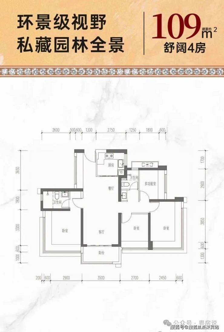 109㎡的4房2厅2卫,折后总价556-575万/套,单价5.09-5.27万/㎡。