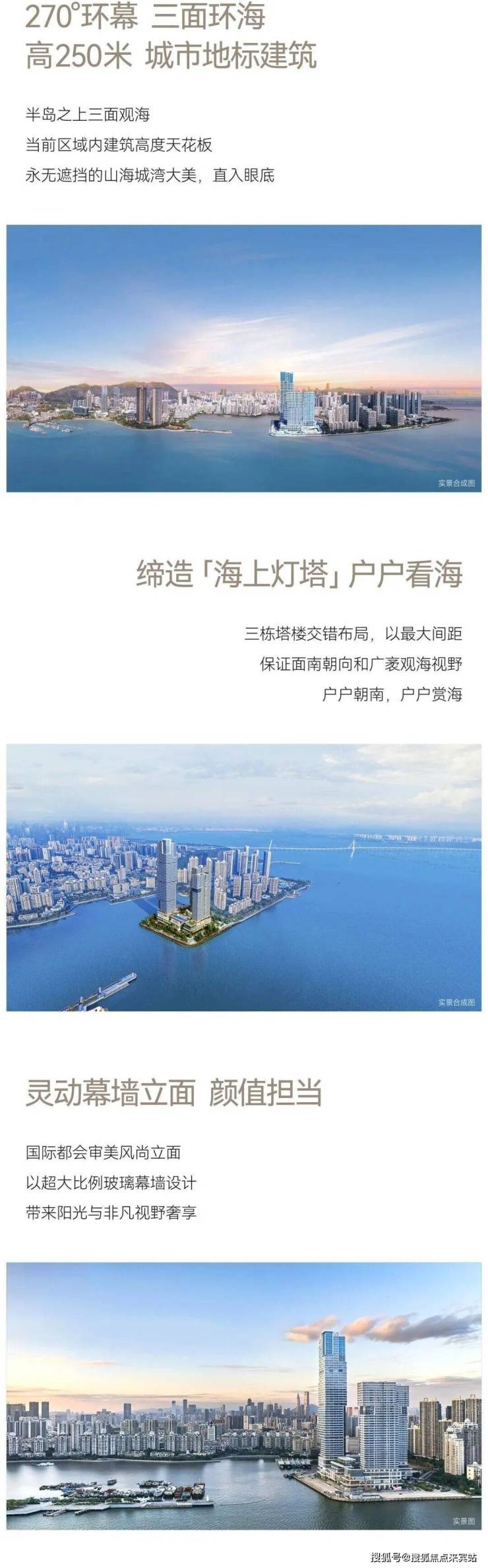 - 产品设计:纯板楼结构,3梯1户/3梯2户设计,南北通透;层层户户看海,部分楼栋(1栋)为纯公寓且带阳台;270°环幕海景(正南向无遮挡,西侧、北侧亦有内湾海景),是深圳湾距离海更近、视野更优的顶级公寓(优于深圳湾一号、瑞府等竞品)。