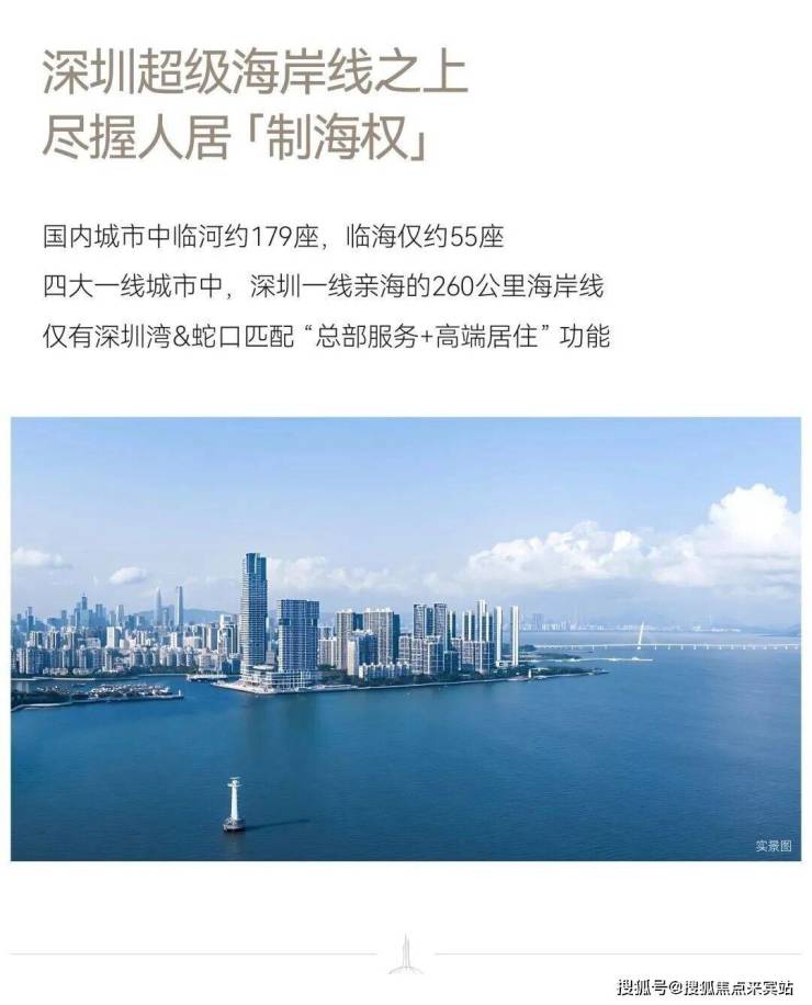 - 项目位置:位于深圳南山区蛇口街道南端,三面环海,南临深圳湾(与香港元朗隔海相望),东临深圳湾口岸,东侧为湾厦路,毗邻南海玫瑰园三期、半岛城邦等成熟社区,距离后海总部基地约4公里,与海上世界隔“小湾区”相望。