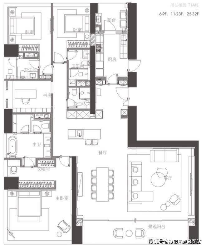 01户型 西端户 约350㎡ 四房两厅四卫